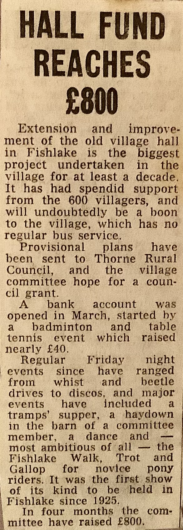 Fishlake School in the Doncaster Chronicle 1 Feb 1962